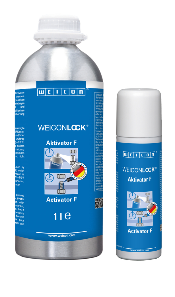 Durch die Vorbehandlung mit WEICON Aktivator F kann die Aushärtezeit stark verkürzt werden. Der Aktivator empfiehlt sich auch bei allen passiven Oberflächen, sowie in jedem Fall bei niedrigen Umgebungstemperaturen (ab +10 °C/+50 °F und darunter) und großen Spaltbreiten. Bei nichtmetallischen Oberflächen ermöglicht erst der Aktivator die Aushärtung von WEICONLOCK.