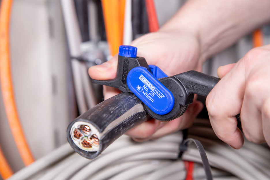 Kabelmesser für Längs- und Rundschnitte bei Rundkabeln ab 25 mm Ø