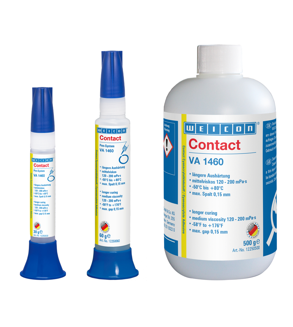 Ist im ausgehärteten Zustand gegenüber Feuchtigkeitseinflüssen weniger anfällig. WEICON Contact VA 1460 eignet sich für die Verklebung der verschiedensten Werkstoffe. WEICON Contact VA 1460 kann in zahlreichen Bereichen der Industrie zum Einsatz kommen.