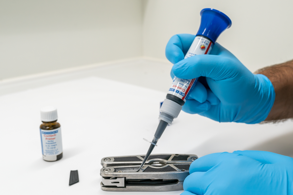 Der große Vorteil bei dem Contact VA250 Black ist neben einer restelastischen Klebeverbindung, die schwarze Farbe des Klebers. Dadurch nimmt man die Klebestelle gegenüber eines herkömmlich ungefärbten Klebers kaum mehr wahr.