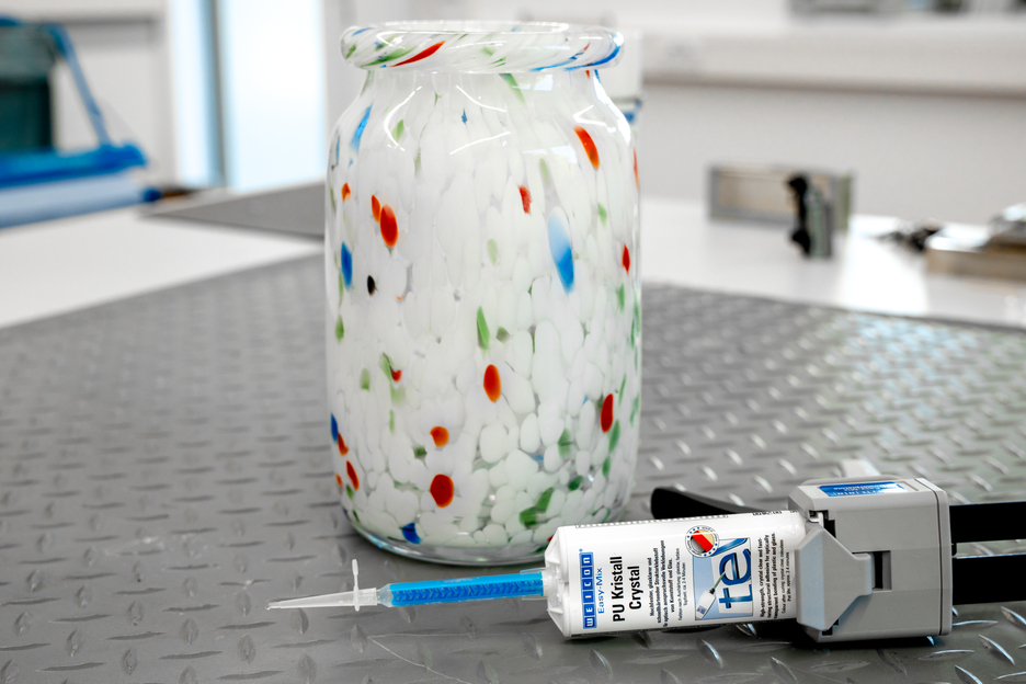 WEICON Easy-Mix PU Kristall ist ein glasklarer und farbloser Zweikomponenten-Polyurethan-Klebstoff für die Verklebung von Kunststoffen (z. B. Polycarbonat) sowie die Verbindung von Kunststoffen mit Stahl, Edelstahl, Aluminium, Beton, Holz und Glas. Der hochfeste und schnellhärtende Strukturklebstoff ist nach ca. 30 Minuten schleif- und überlackierbar. Er haftet sehr gut auf den verschiedensten Materialien und ist beständig gegenüber Witterung und vielen aggressiven Chemikalien. PU Kristall ist von -55 °C bis +100 °C (-67 bis +212 °F) temperaturbeständig. Durch seine transparente Aushärtung ist er besonders für Verklebungen von z. B. Kunststoff und Glas geeignet. Auch bei strukturellen Verklebungen, bei denen eine farbige Klebefuge den optischen Gesamteindruck des Bauteils stören würde, kann er zum Einsatz kommen. Mit PU Kristall können transparente Kunststoffe, wie z. B. Plexiglas und andere Materialien, sauber und ansprechend hochfest mit- und untereinander verbunden werden. PU Kristall kann in der Kunststofftechnik, im Maschinenbau, im Modell- und Formenbau, im Metallbau, im Schiffs- und Bootsbau, im Karosserie- und Fahrzeugbau, im Messe- und Ausstellungsbau sowie in vielen weiteren Bereichen zum Einsatz kommen