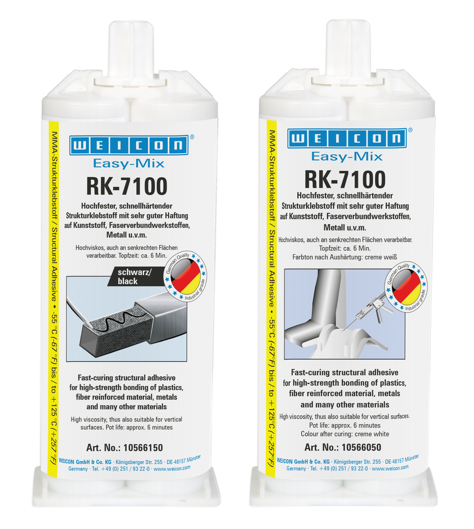 WEICON RK-7100 verbindet viele Materialien, wie Kunststoffe, Metalle oder Keramik, mit hoher Zug-, Scher- und Schälfestigkeit mit- und untereinander. Er eignet sich besonders für strukturelle Verklebungen, bei denen hochfeste Verbindungen benötigt werden. Der Klebstoff ist sehr zähflüssig und eignet sich aus diesem Grund auch zur Verarbeitung an senkrechten Flächen. RK-7100 ist universell einsetzbar und kann beispielsweise in der Kunststofftechnik, im Metallbau, im Karosserie- und Fahrzeugbau, im Maschinenbau, in der Elektrotechnik, im Modell- und Formenbau oder im Messe- und Ausstellungsbau verwendet werden.
