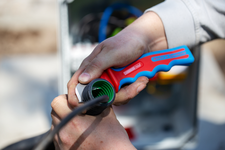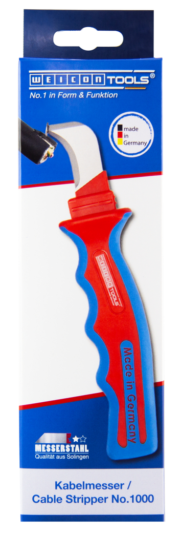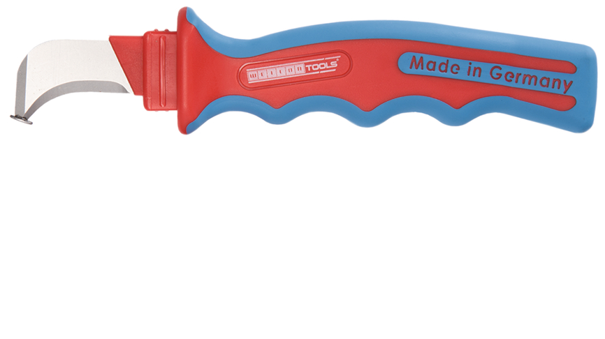 Schnelles Aufschneiden mehrfach isolierter Kabel Schutz der Leiter durch schuhförmige Klingenspitze Gute Kraftübertragung durch optimierte Griffform