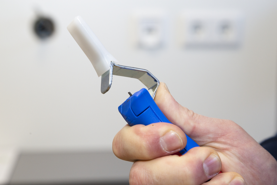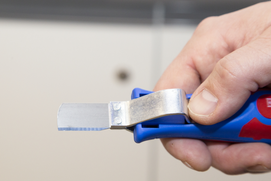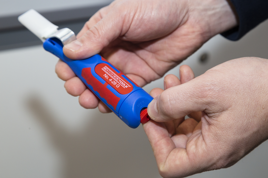 Großer Griffdurchmesser für optimale Haptik Stufenlos regulierbare und leicht bedienbare Stellschraube Präzises, schnelles und sicheres Entmanteln Schneller Wechsel des Innenmessers durch Bajonettverschluss