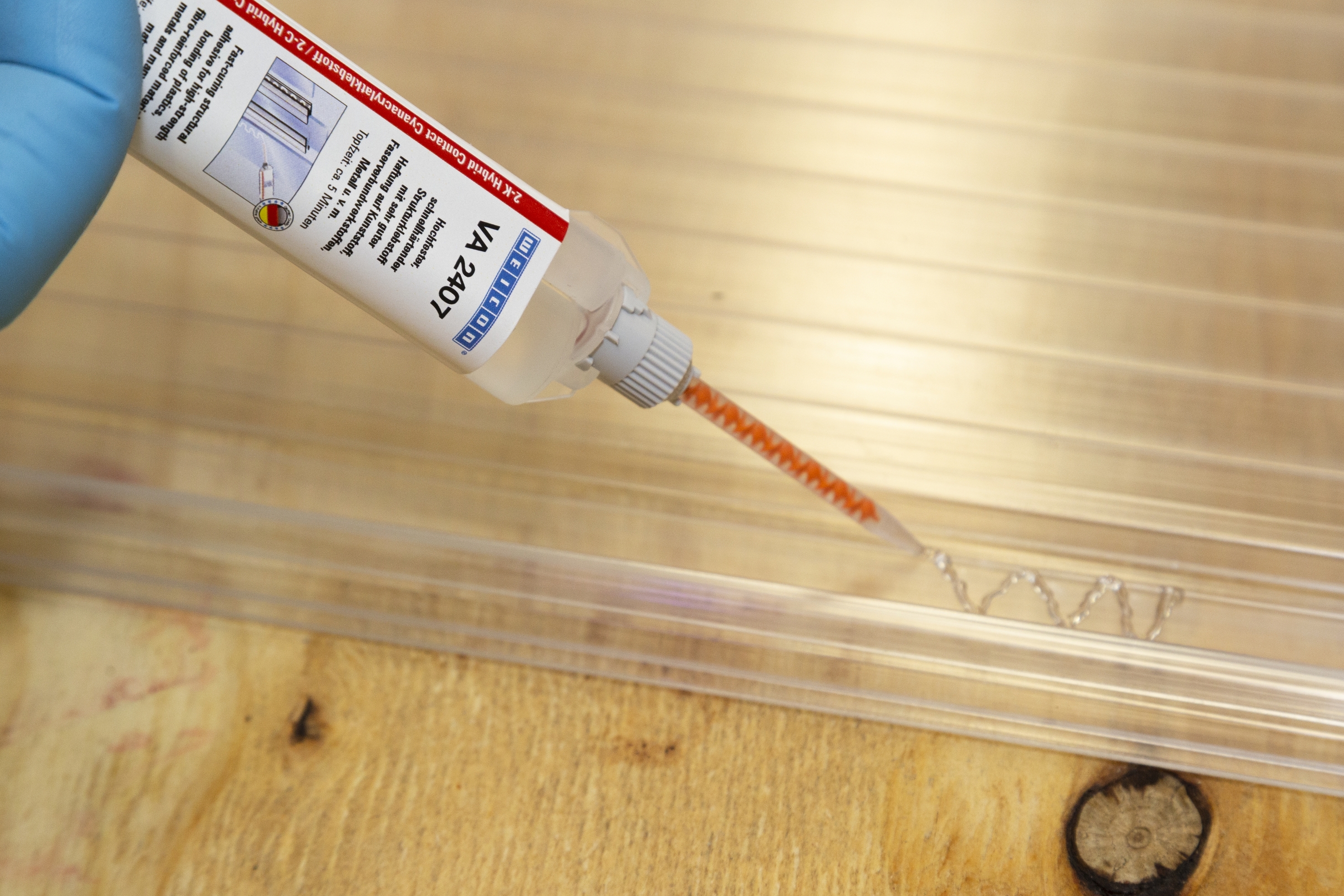 Weicon aus Münster hat einen farblosen und glasklar aushärtenden Zweikomponenten-Cyanacrylatklebstoff für die Verklebung der unterschiedlichsten Materialien mit- und untereinander entwickelt – Weicon VA 2407.