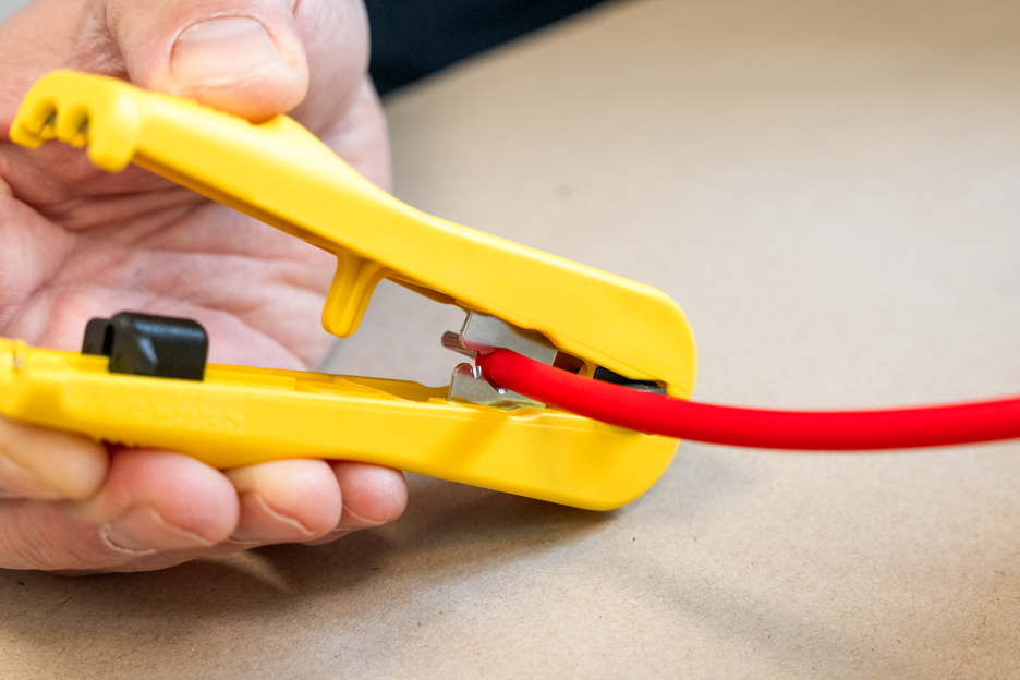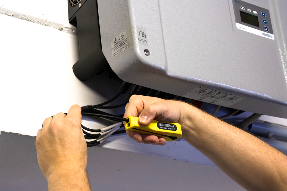 zum Entmanteln und Abisolieren gängiger Photovoltaik-Kabel wie z. B. H1Z2Z2-K, mit einem Querschnitt von 4 & 6 mm² I mit integriertem Seitenschneider