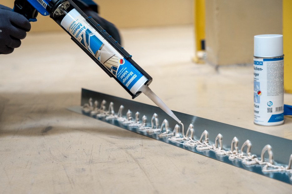Schneller und haftstarker Kontaktklebstoff auf der Basis von Synthesekautschuk für Verklebungen im Innen- und Außenbereich. Der elastische 1-K Montageklebstoff kann auf vielen Materialien, wie Holz und Holzfaserplatten, MDF und OSB-Platten, Dekorplatten, Stahl, Aluminium, Kunststoff, PVC, Gips, Gipskarton, Keramik, Mauerwerk, Fliesen, Stein sowie Beton zum Einsatz kommen. Der Klebstoff eignet sich zur schnellen und dauerhaften Befestigung von Sockelleisten, Paneelen, Fußbodenelementen, Wandverkleidungen, Fensterböden, Türschwellen, Holztürfutter, Zierprofilen u. v. m.