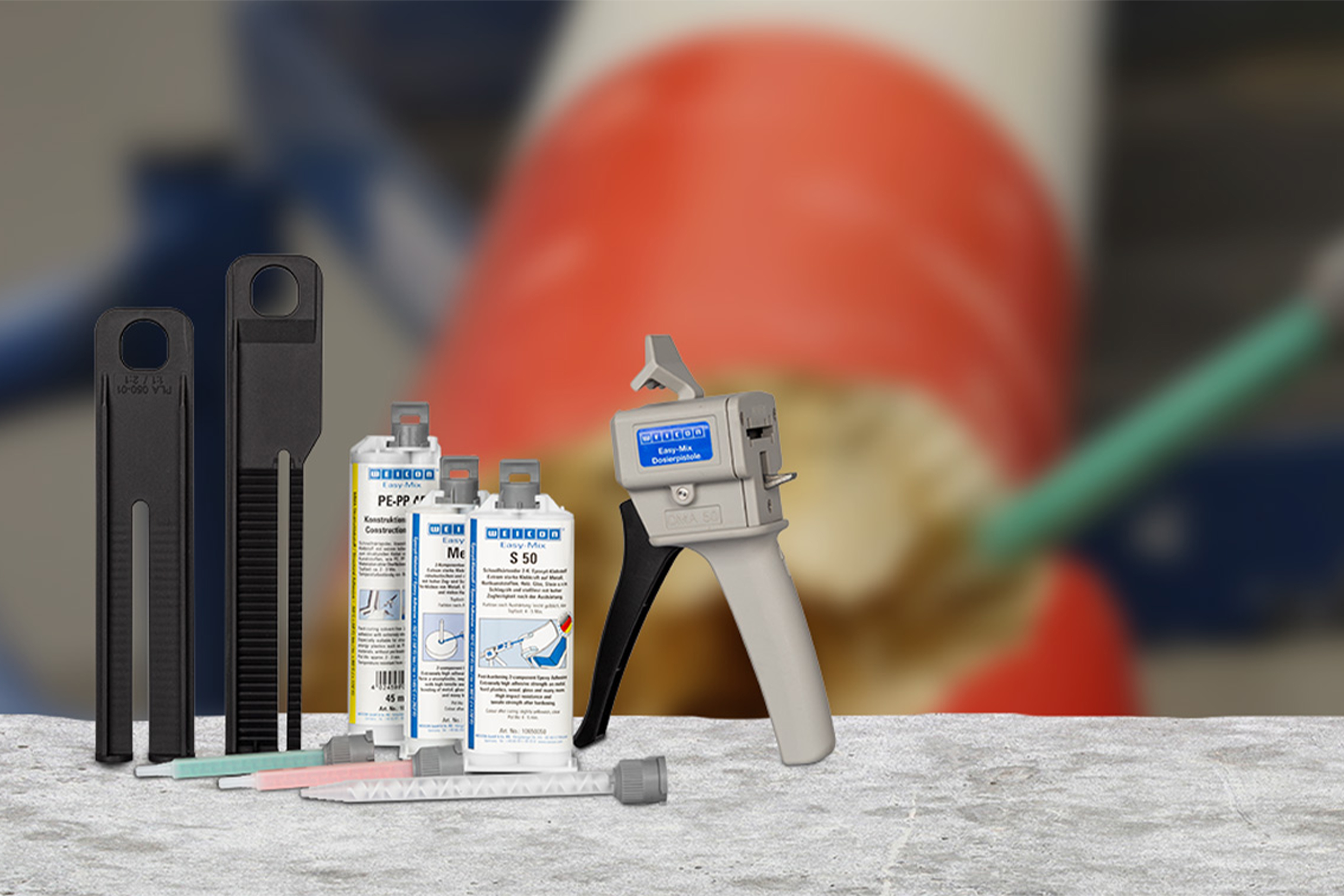 Mit dem modernen Misch- und Dosiersystem WEICON Easy-Mix lassen sich verschiedene 2K-Klebstofftypen in nur einem Arbeitsgang sauber und exakt automatisch dosieren, mischen und auftragen. Somit sind eine gleichbleibende Qualität und die Prozesssicherheit innerhalb einer Serienfertigung gewährleistet.