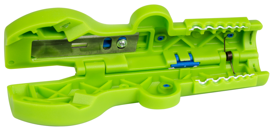 Multifunktionell mit optimierter Kabelführung | Rundschnitt – Längsschnitt – Abisolieren – Schneiden | wechselbare Hakenklinge in jeder Position arretierbar