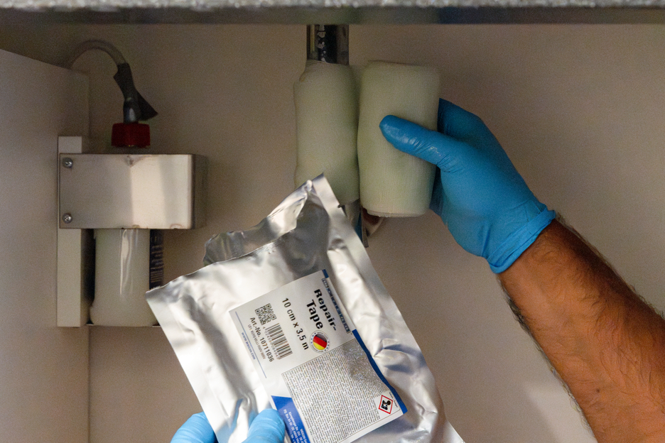 Flexibles, widerstandsfähiges und selbstverschweißendes Reparaturband aus glasfaserverstärktem Kunststoff für schnelle Notfall-Reparaturen im Innen- oder Außenbereich. Das Band ist mit einem Spezialharz getränkt und wird durch den Kontakt mit Wasser aktiviert. Es zeichnet sich durch eine sehr einfache und schnelle Anwendung aus und verfügt über sehr starke Hafteigenschaften auf nahezu allen Untergründen. Nach nur 30 Minuten ist das Band vollständig ausgehärtet und belastbar. Nach der Aushärtung ist das Tape schleif- und überlackierbar. Das Tape kann ohne zusätzliches Werkzeug verarbeitet werden und dient zur zuverlässigen und dauerhaften Reparatur in Industrie, Handwerk, Haushalt, Camping und im DIY-Bereich.