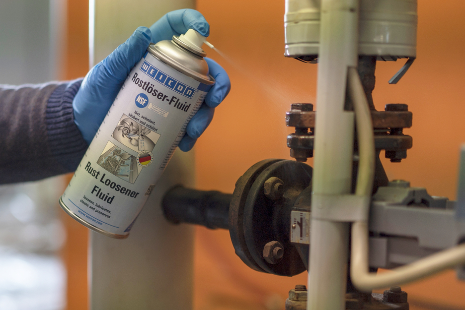 WEICON Rostlöser-Fluid ist physiologisch unbedenklich und verfügt über eine NSF Registrierung für den Lebensmittelbereich. Damit kann es in der Nahrungsmittel- und Getränkeindustrie sowie der pharmazeutischen und kosmetischen Industrie eingesetzt werden. Rostlöser-Fluid löst festgerostete und oxidierte Verschraubungen, Bolzen, Hebel, Gelenke und Scharniere sowie schwergängige Mechanik von Bauteile. Durch seine sehr guten Kriecheigenschaften dringt Rostlöser-Fluid auch in kleinste Zwischenräume. Es sichert die Funktion von mechanischen Teilen und elektrischen Kontakten. Das Spray schützt nachhaltig vor Korrosion und Oxidation. Es säubert und pflegt Metalloberflächen, mechanische Teile und elektrische Anlagen. Aufgrund seiner speziellen Rezeptur und der daraus resultierenden NSF Registrierung, kann Rostlöser-Fluid zur Verbesserung der Arbeitsplatzsicherheit und des Gesundheitsschutzes beitragen.