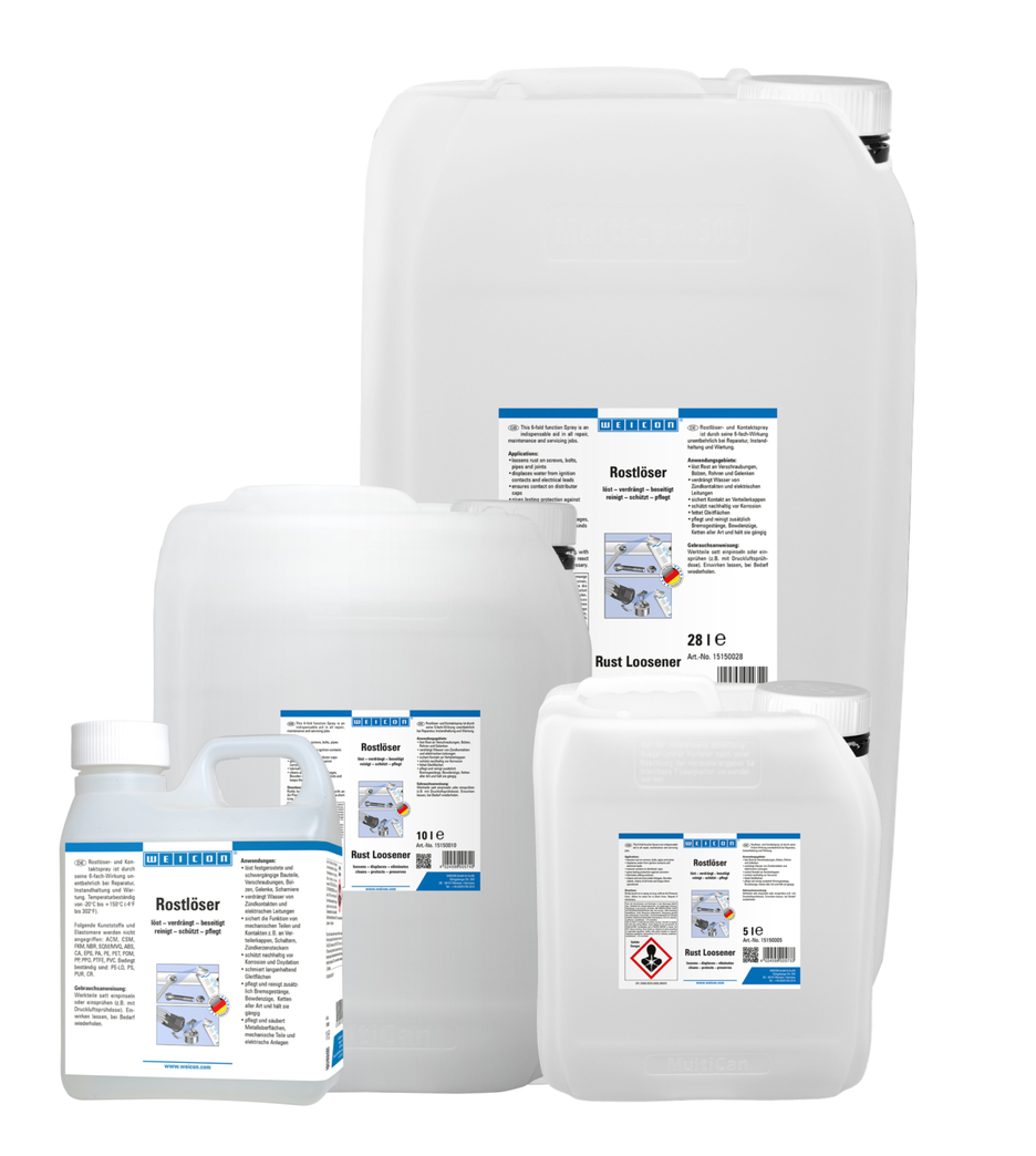 WEICON Rostlöser ist durch seine 6-fach-Wirkung unentbehrlich bei Reparatur, Instandhaltung und Wartung. Durch die sehr guten Kriecheigenschaften dringt Rostlöser auch in kleinste Zwischenräume. Löst festgerostete und schwergängige Bauteile, Verschraubungen, Bolzen, Gelenke und Scharniere, schützt nachhaltig vor Korrosion und Oxidation. WEICON Rostlöser schmiert langanhaltend Gleitflächen und pflegt und säubert Metalloberflächen, mechanische Teile und elektrische Anlagen.