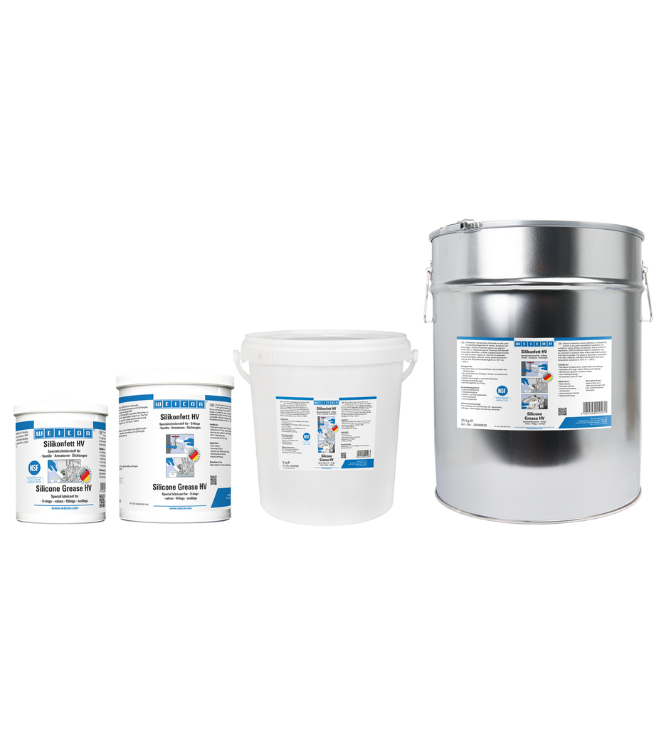 WEICON Silikonfett HV ist haftstark und transparent und hat eine sehr gute Kunststoffverträglichkeit. Aufgrund der NSF H1-Registrierung eignet es sich als Schmierstoff für Ventile, Armaturen und Dichtungen in sensiblen Bereichen. Entspricht den KTW-Leitlinien des Umweltbundesamtes für den Kontakt mit Trinkwasser. Es kann in der Lebensmitteltechnik, in der Getränkeindustrie, im Sanitär- und Heizungsbereich, in der Pharmaindustrie und in der Dichtungstechnik zum Einsatz kommen. WEICON Silikonfett HV ist BAM geprüft und sicherheitstechnisch beurteilt - siehe Merkblatt M 034-1 "Liste der nichtmetallischen Materialien für den Einsatz in Sauerstoff" (DGUV Information 213-075) der BG RCI. Das Fett ist besonders materialverträglich, geruchs- sowie geschmacksneutral und hat eine Temperaturbeständigkeit von -50 °C bis +200 °C. WEICON Silikonfett HV eignet sich für das Schmieren von Kunststoffteilen, Gummiteilen und -abdichtungen, das Schmieren von Ventilen, Armaturen und Dichtungen, für Geräte und Anlagen, für langsam drehende Lager und als Montagehilfe für O-Ringe.