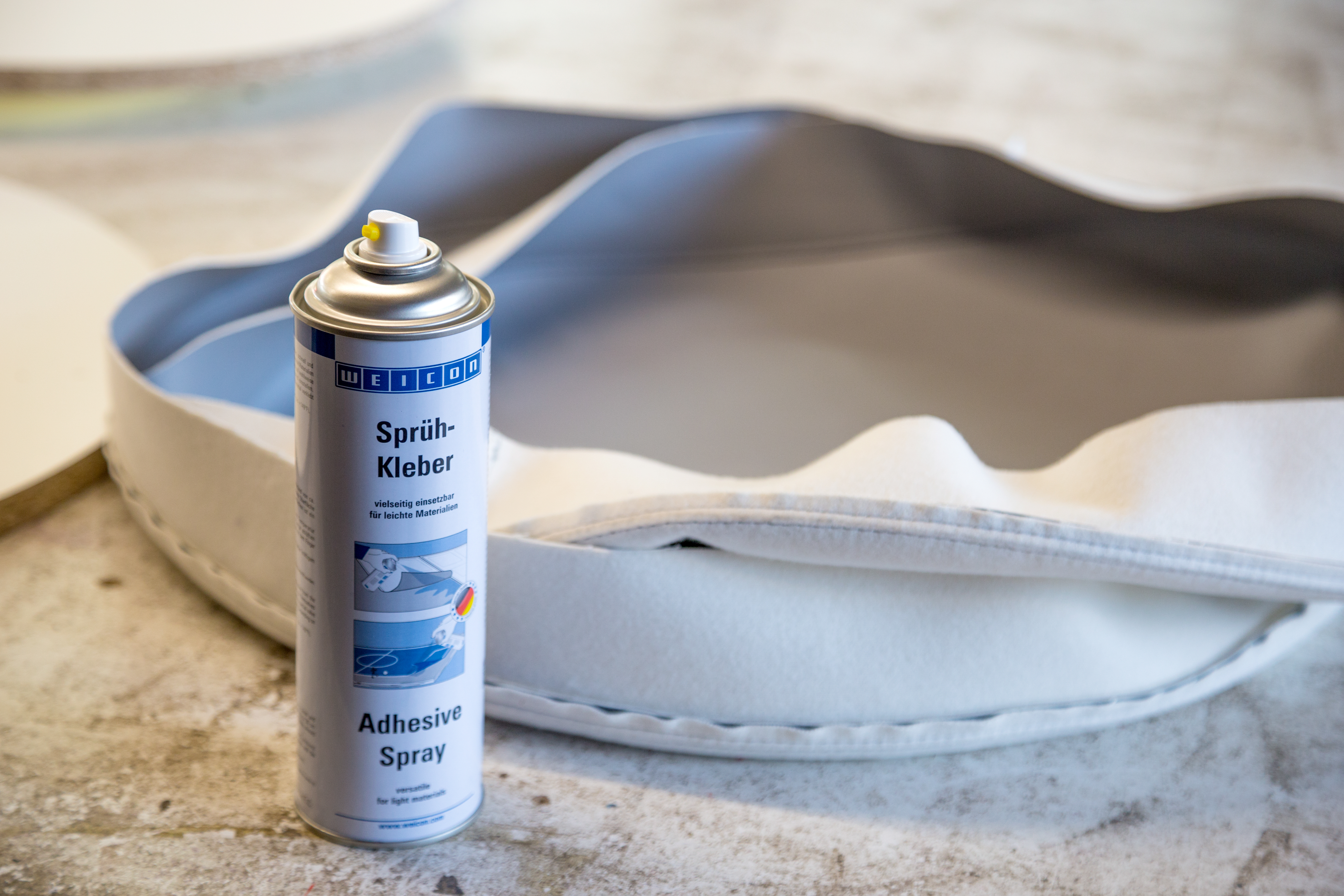 WEICON Sprühkleber ist universell einsetzbar und verbindet leichte Materialien mit- und untereinander. WEICON Sprühkleber eignet sich zur Verklebungen zahlreicher Werkstoffe, wie Papier, Karton, Pappe, Holz, dünne Furniere, Kork, Leder, Textilien, Filz, Weichschaum, Gummi und Schaumgummi, Kunststofffolie (außer PVC und Polyethylen) und ist besonders für die Verklebung von Hartschaum geeignet.