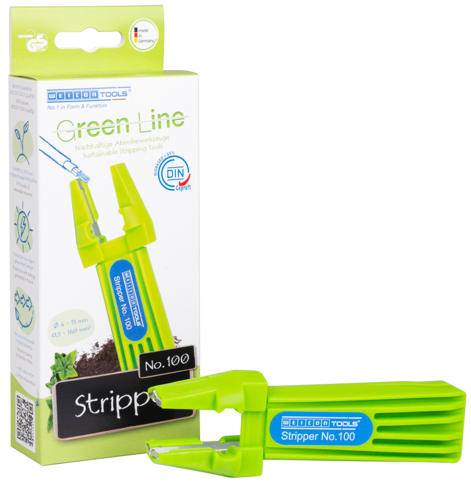 Die WEICON TOOLS Green Line ist eine ganz besondere Produktlinie, die speziell auf Nachhaltigkeit und Schonung der Ressourcen ausgerichtet ist. Die Green Line umfasst Abisolierwerkzeuge, die aus bis zu 97 % nachwachsenden und natürlichen Rohstoffen bestehen. WEICON Stripper No. 100, ist ein Universal-Werkzeug zum Abmanteln und Abisolieren von unterschiedlichsten Kabelarten und -querschnitten, wie sie in der gesamten Hausinstallation Verwendung finden. Mit diesem Werkzeug kann ohne Einstellung der Schnitttiefe ein Rund- und Längsschnitt durchgeführt werden. Besonders gut geeignet für bündiges Abmanteln im Decken- und Wandbereich, z. B. in Abzweig- und Verteilerdosen. Ebenfalls gut geeignet für stufenweises Abisolieren beim Anschluß von Satellitenanlagen. Der Arbeitsbereich eignet sich bei der No.100 von 0,5 - 16 mm² / 4 - 13 mm Ø.