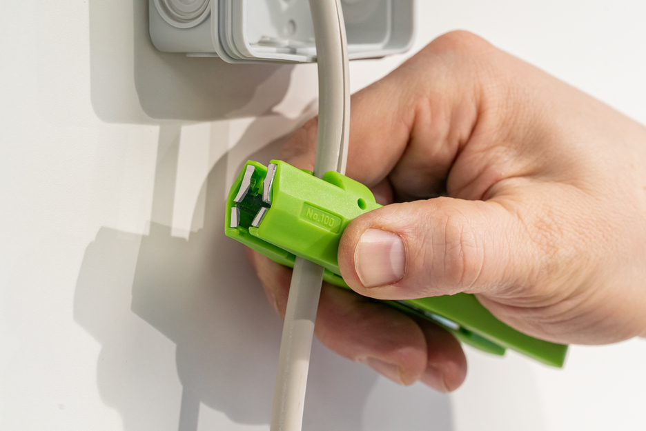 Universalwerkzeug zum Abisolieren von Kabeln I Bündiges Abisolieren an Wänden und Decken I Rund- und Längsschnitt I Arbeitsbereich 0,5 - 16 mm² / 4 - 13 mm Ø I Für viele verschiedene Kabeltypen in der Hausinstallation