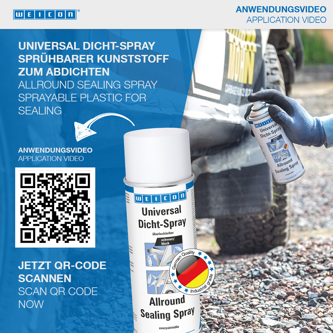 WEICON Universal Dicht-Spray ist ein haftstarker, sprühbarer Kunststoff zur Abdichtung von Undichtigkeiten. Es wurde speziell für das Abdichten feinster Risse und Nähte im Innen- und Außenbereich entwickelt. Es kann zum einfachen Abdichten in den verschiedensten Anwendungen verwendet werden, wie an Dachrinnen, Abwasser- und Abflussrohren, Wohnwagen, -mobilen und Booten, Dächern und Fenstern, Poolwänden und Teichfolien, Kellerschächten und an Lüftungsschächten. Universal Dicht-Spray haftet auf vielen Oberflächen, wie zum Beispiel Stein, Metall, Kunststoff, Holz, Emaille, uvm. Das Spray ist überlackierbar, wasserfest und witterungsbeständig. Es schützt Metalle vor Korrosion und ist frei von Bitumen und Silikon.