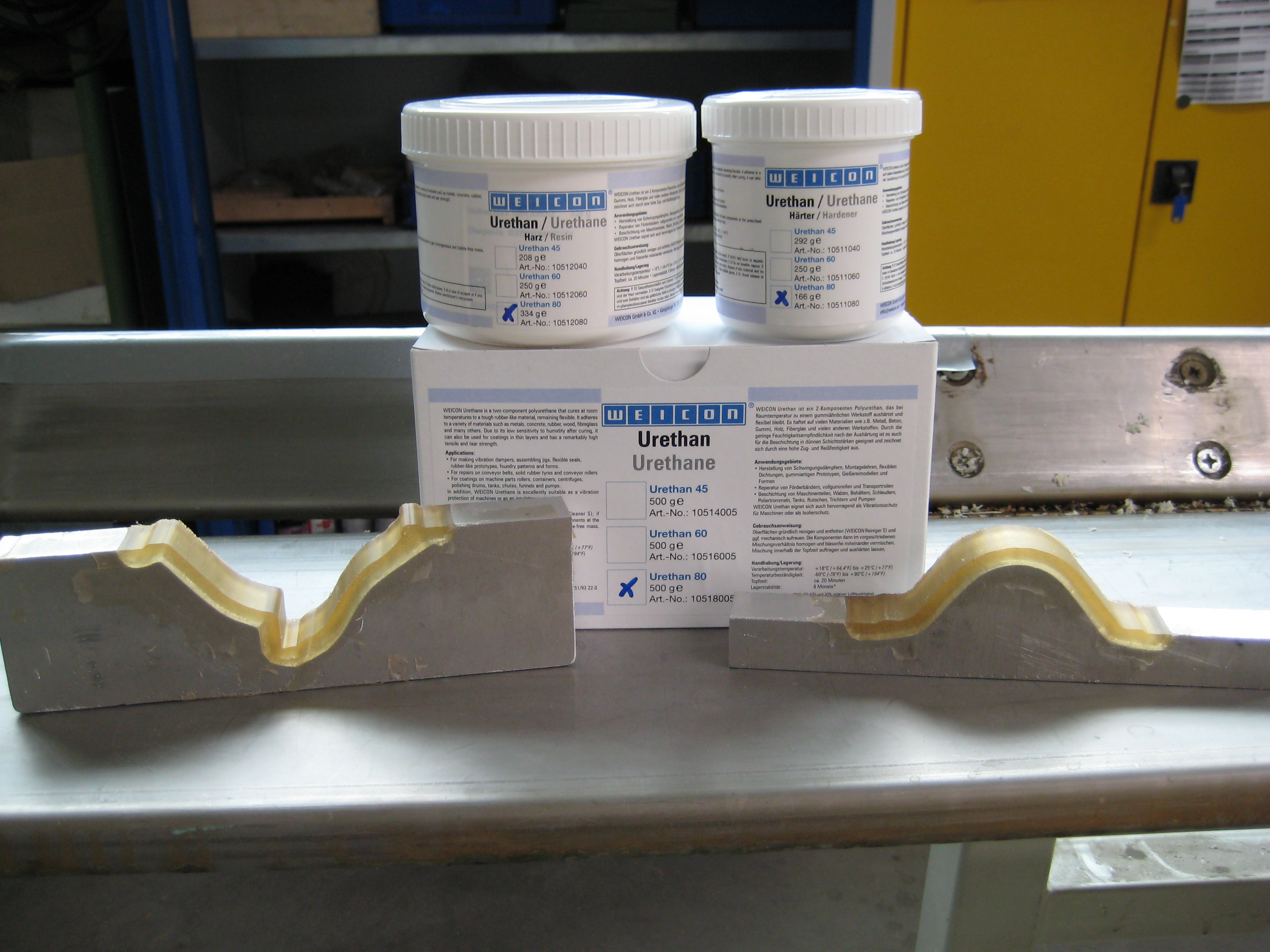WEICON Urethane sind 2-Komponenten Polyurethane, die bei Raumtemperatur zu einem gummiähnlichen Werkstoff aushärten und bis -60 °C (-76 °F) flexibel bleiben. WEICON Urethane haften auf unterschiedlichsten Materialien, wie z.B. Metall, Beton, Gummi, Holz, Fiberglas und vielen anderen Werkstoffen. Sie sind auch verwendbar als flexible Beschichtungen in Verbindung mit WEICON Plastik-Stahl Systemen. Durch die geringe Feuchtigkeitsempfindlichkeit ist es auch für Beschichtungen in dünnen Schichtstärken geeignet. WEICON Urethan zeichnet sich außerdem durch eine hohe Zug- und Reißfestigkeit aus.