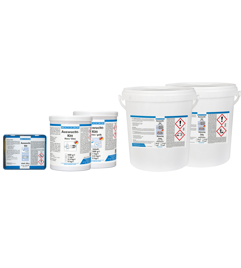 WEICON Auswucht-Kitt ist ein einfach zu verarbeitendes, kalthärtendes 2-Komponenten Knetharz speziell zum Auswuchten von Ankern für Elektromotoren. Gegenüber den spanabhebenden Verfahren, wie z.B. Bohren oder Fräsen ergeben sich bei dieser Art von Auswuchten folgende Vorteile: Keine Arbeiten am Ankerpaket. Dies bedeutet hinsichtlich Geräusch und Leistung der Motoren eine Qualitätsverbesserung. Zeitersparnis, da z.B. Entgratungsarbeiten an den Ausgleichsstellen komplett entfallen Anker, die spanabhebend im 1-Ebenenausgleich gewuchtet wurden, können mit WEICON Auswucht-Kitt ohne Mehraufwand an Zeit im 2-Ebenenausgleich gewuchtet werden. Es fallen keine Metallspäne an, die in die Wicklung gelangen und Störungen verursachen können! Die beim Bohren und/oder Fräsen mögliche Unfallgefahr wird beseitigt. WEICON Auswucht-Kitt wird z.B. beim Probelauf (im ungehärteten Zustand) während des Wuchtvorganges bei 3000 U/min. (Durchmesser des Ankers 40mm) nicht abgeschleudert.