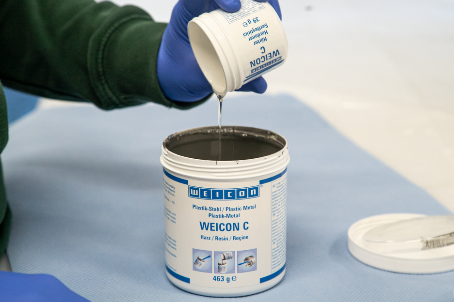 WEICON C ist ein temperaturbeständiges und fließfähiges Epoxidharz-System speziell für den industriellen Einsatz. Der Klebstoff ist nicht korrodierend, antimagnetisch und praktisch schrumpffrei aushärtend. WEICON C eignet sich besonders als Klebstoff für großflächige Anwendungen, für das Ausgießen von Formen sowie für die Herstellung von Fixiervorrichtungen und Werkzeugen (z. B. Spritzgussformen). Es kann im Werkzeug- und Formenbau sowie in vielen weiteren industriellen Bereichen, die starker Wärmebeanspruchung unterliegen, zum Einsatz kommen.