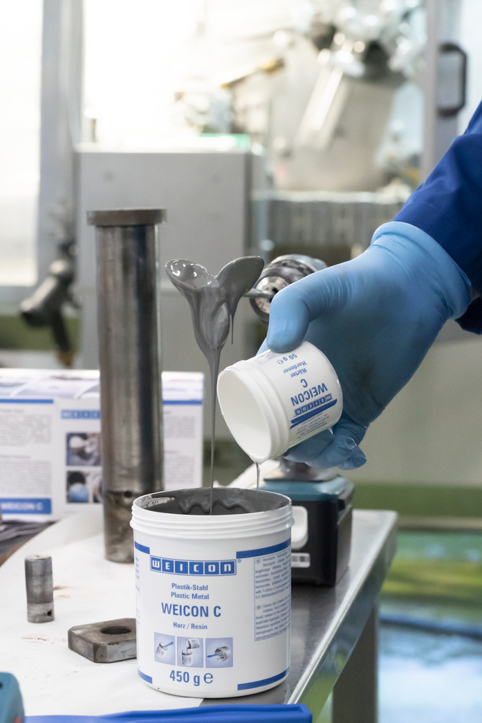 WEICON C ist ein temperaturbeständiges und fließfähiges Epoxidharz-System speziell für den industriellen Einsatz. Der Klebstoff ist nicht korrodierend, antimagnetisch und praktisch schrumpffrei aushärtend. WEICON C eignet sich besonders als Klebstoff für großflächige Anwendungen, für das Ausgießen von Formen sowie für die Herstellung von Fixiervorrichtungen und Werkzeugen (z. B. Spritzgussformen). Es kann im Werkzeug- und Formenbau sowie in vielen weiteren industriellen Bereichen, die starker Wärmebeanspruchung unterliegen, zum Einsatz kommen.