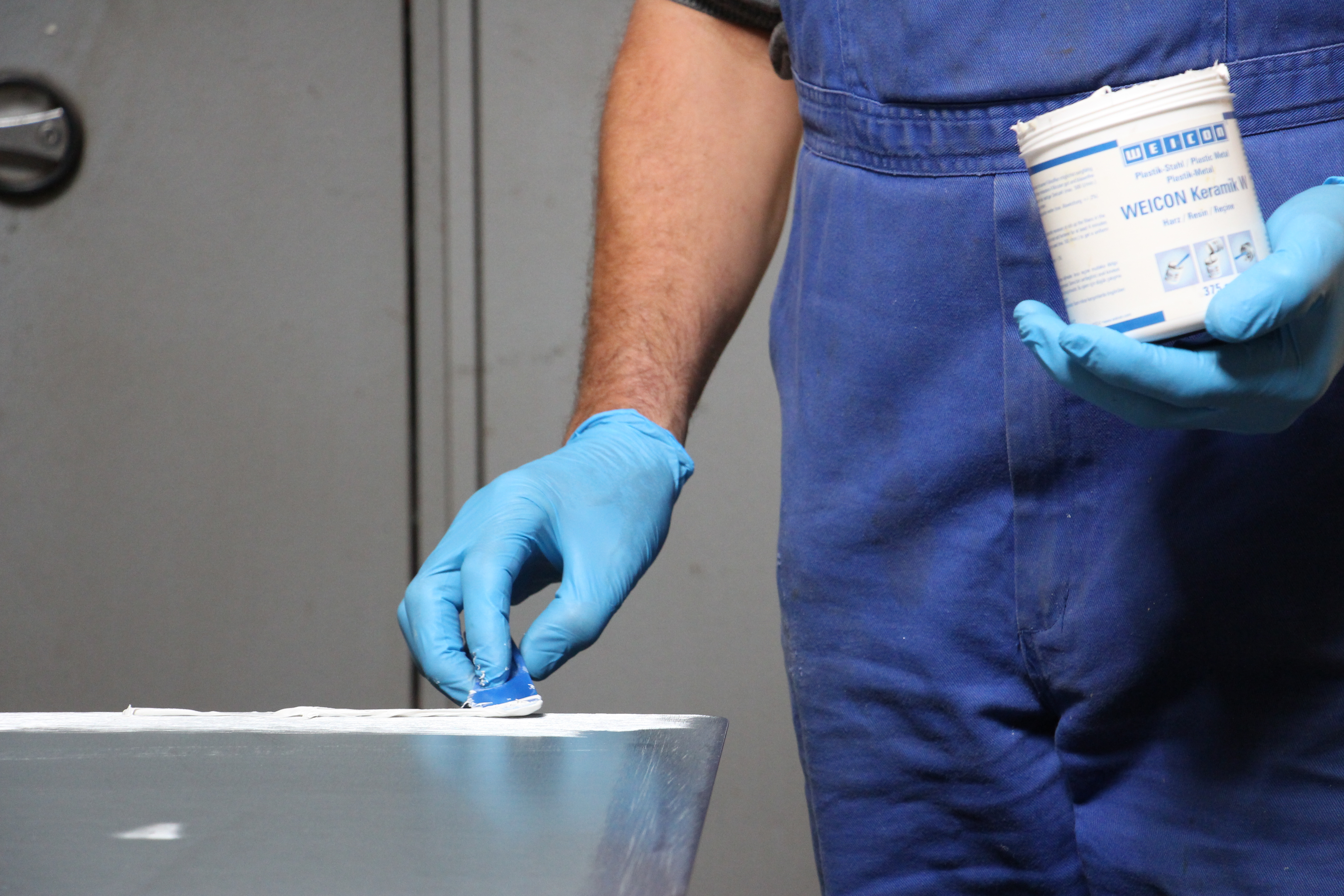 Das Epoxidharz-System WEICON Keramik W bietet einen hohen Verschleißschutz und eine hohe Abriebfestigkeit. Es ist chemikalienbeständig und hat eine hohe Temperaturbeständigkeit bis +230 °C ; kurzfristig sogar bis +250 °C. Keramik W ist ablauffest, spachtelbar und kann an senkrechten Flächen und sogar „über Kopf“ verarbeitet werden. Es eignet sich für Verklebungen bzw. Auskleidungen von Aluminiumoxyd- Steinen im Mühlenbau, für das Auskleiden stark beanspruchter Pumpengehäuse, als Verschleißschutz für Gleitlager, Rutschen und Rohre und überall dort, wo aus optischen Gründen die Anwendung dunkler Produkte nicht erwünscht ist. Es kann im Maschinen- und Anlagenbau, im Mühlenbau, im Apparatebau sowie in vielen weiteren Bereichen der Industrie zum Einsatz kommen.