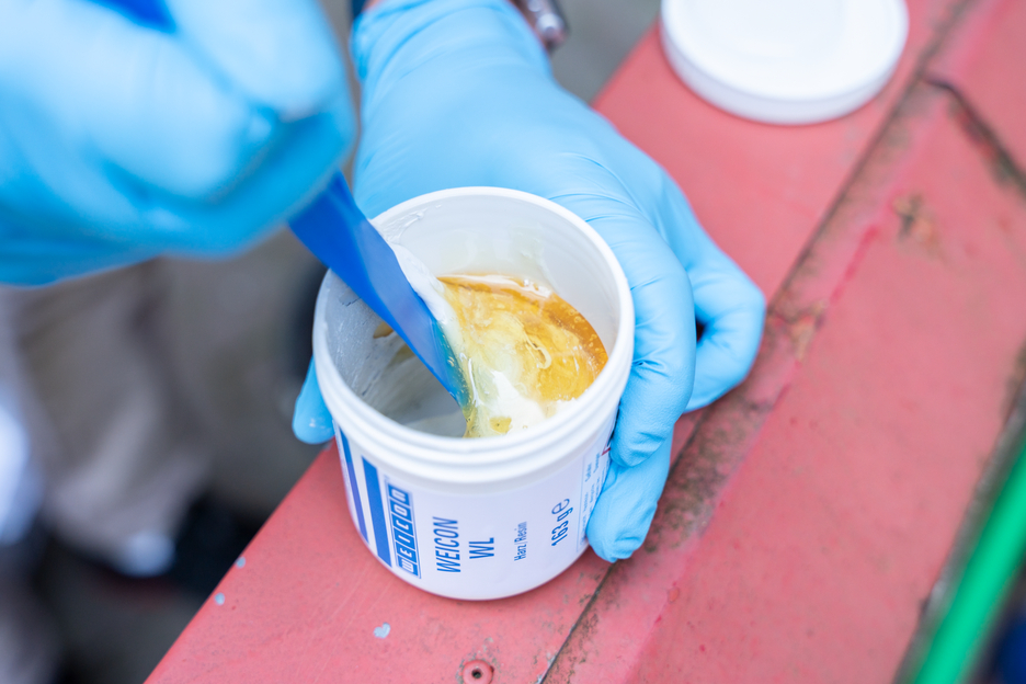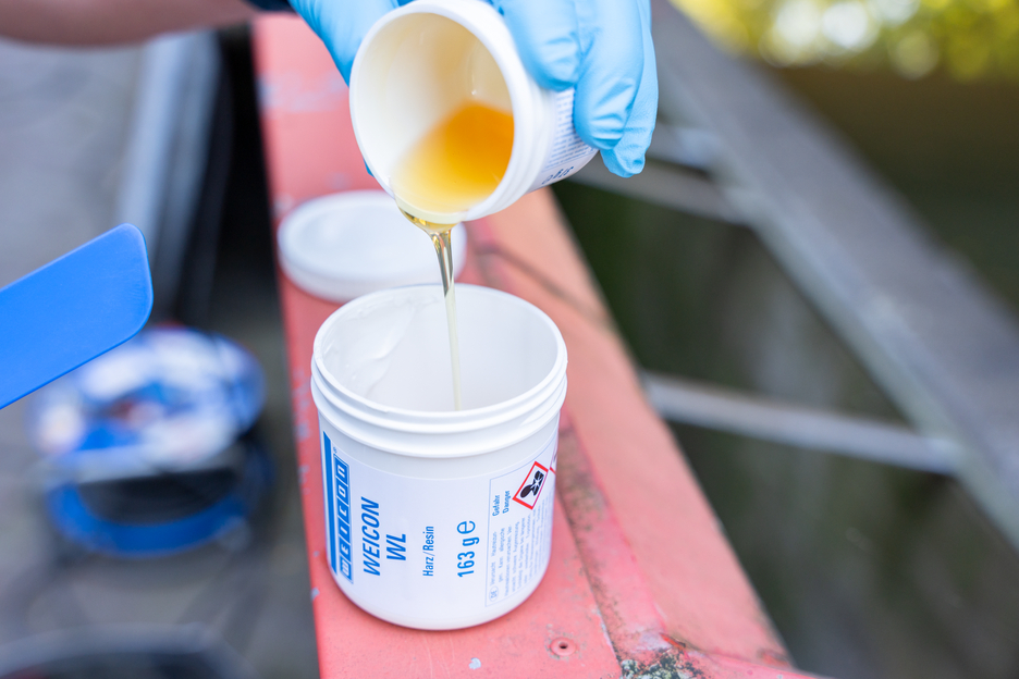 Das Epoxidharz-System WEICON WL dient zur Beschichtung beanspruchter Oberflächen. Es besitzt insbesondere auf Edelstahl eine hohe Haftkraft. Es ist flüssig, sprühbar, streichbar (mit einem Pinsel zu verarbeiten), selbstnivellierend, restelastisch, ist keramisch gefüllt und chemikalienbeständig. Durch seine lange Verarbeitungszeit kann WEICON WL bei Anwendungen mit höheren Umgebungstemperaturen oder für größere Flächen zum Einsatz kommen. Aufgrund der hohen Fließfähigkeit ist bei der Verarbeitung von WEICON WL auf eine geringe Schichtdicke und die Schichtfolgezeit zu achten. WEICON WL eignet sich gut für einen Systemaufbau in Kombination mit anderen Plastik-Stahl Typen. Beispielsweise kann der 2-Komponenten Epoxidharz als Grundierung bei der Auskleidung stark beanspruchter Pumpengehäuse aus Edelstahl dienen. Die Oberflächenbeschichtung kann im Bereich der Abwassertechnik, an Pumpen, in der Wasserförderung, im Maschinen- und Anlagenbau, im Apparatebau sowie in vielen weiteren Bereichen der Industrie zum Einsatz kommen.
